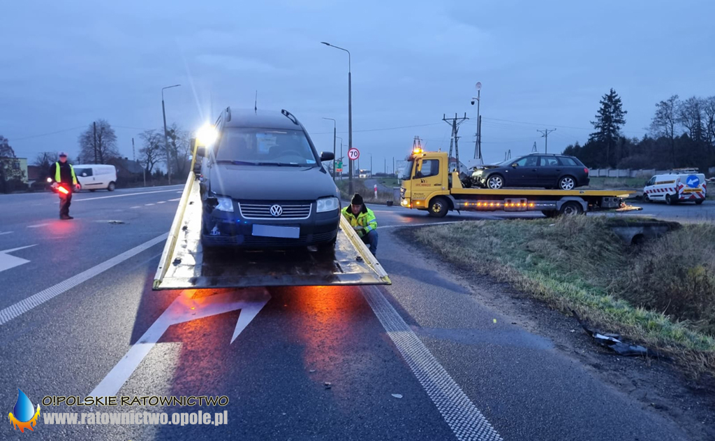 Wymuszenie pierwszeństwa przyczyną zderzenia Volkswagena i Audi na obwodnicy Kluczborka