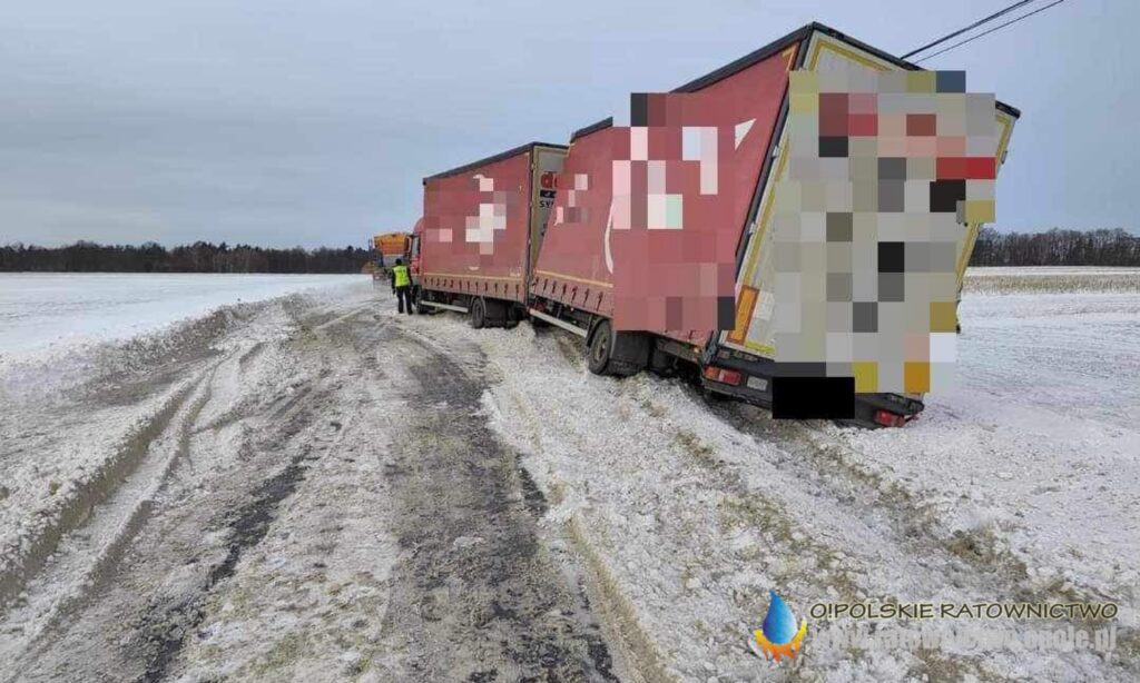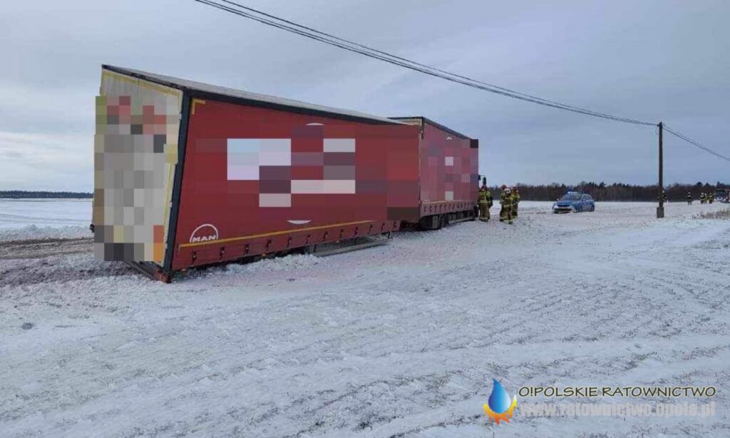 Po dojeździe na miejsce zastano pojazd ciężarowy marki MAN wraz z naczepą, która znajdowała się w rowie. Kierującemu nic się nie stało.