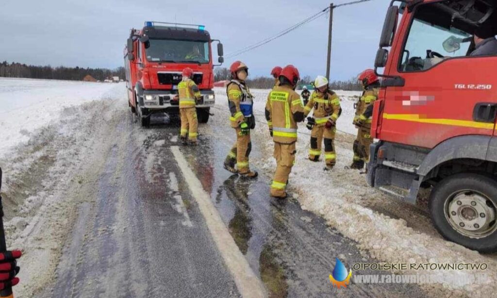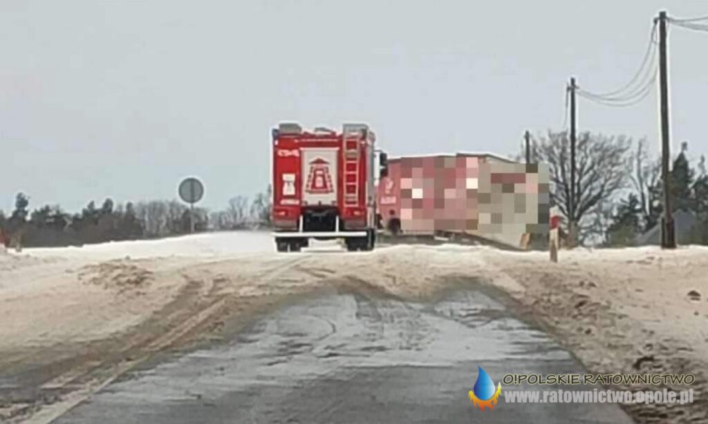 W poniedziałek 22 stycznia chwilę przed godziną 10:20 do Stanowiska Kierowania KP PSP w Oleśnie wpłynęło zgłoszenie o zdarzeniu drogowym z udziałem samochodu ciężarowego na drodze wojewódzkiej numer 494 (ulica Częstochowska) w miejscowości Bodzanowice.