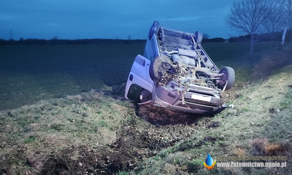 Po przybyciu na miejsce okazało się, że kierujący samochodem dostawczym marki Citroen, omijając dziury w drodze, stracił panowanie nad pojazdem, wypadł z drogi i dachował.