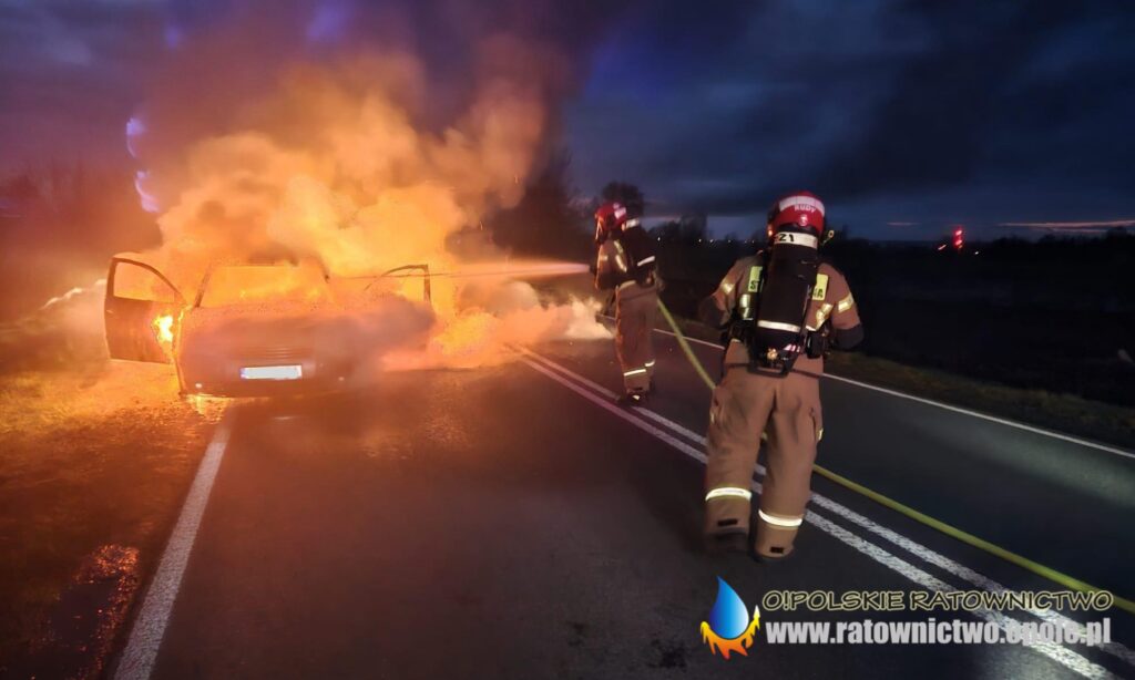 Po dojeździe na miejsce strażacy potwierdzili w pełni rozwinięty pożar samochodu osobowego.