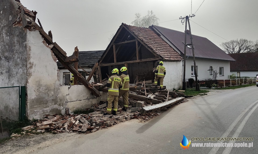 Działania strażaków polegały na zabezpieczeniu miejsca zdarzenia oraz sprawdzeniu gruzowiska pod kątem ludzi i zwierząt. W wyniku zdarzenia na szczęście nikomu nic się nie stało.