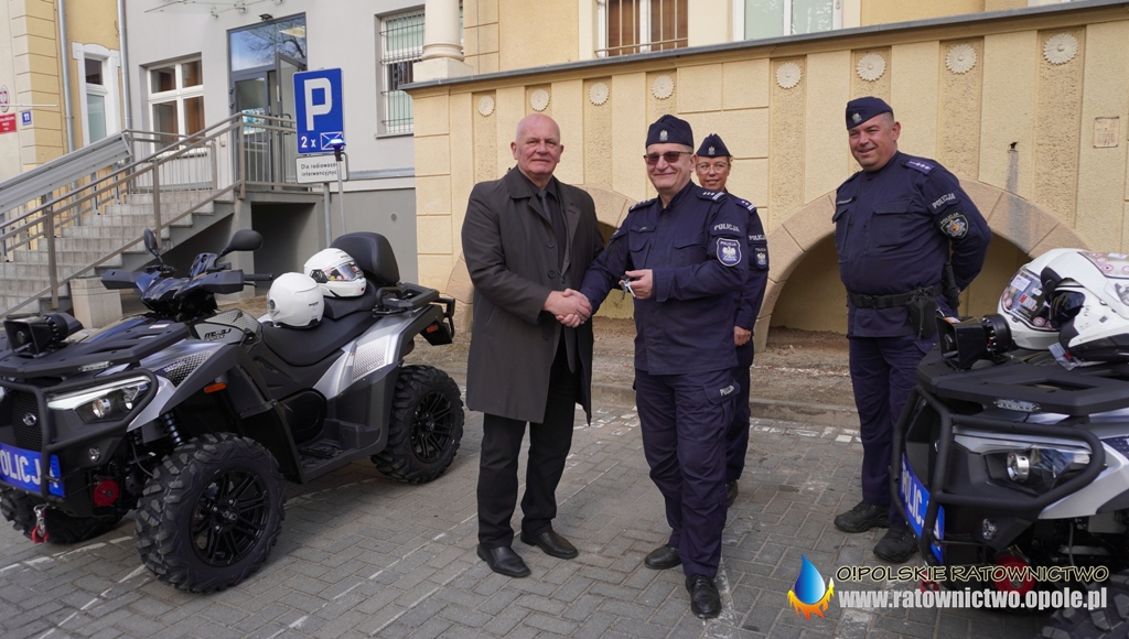 Dziś (05.04.) przed budynkiem Komendy Powiatowej Policji w Nysie odbyło się uroczyste przekazanie dwóch quadów oraz przyczep do dyspozycji nyskich policjantów.