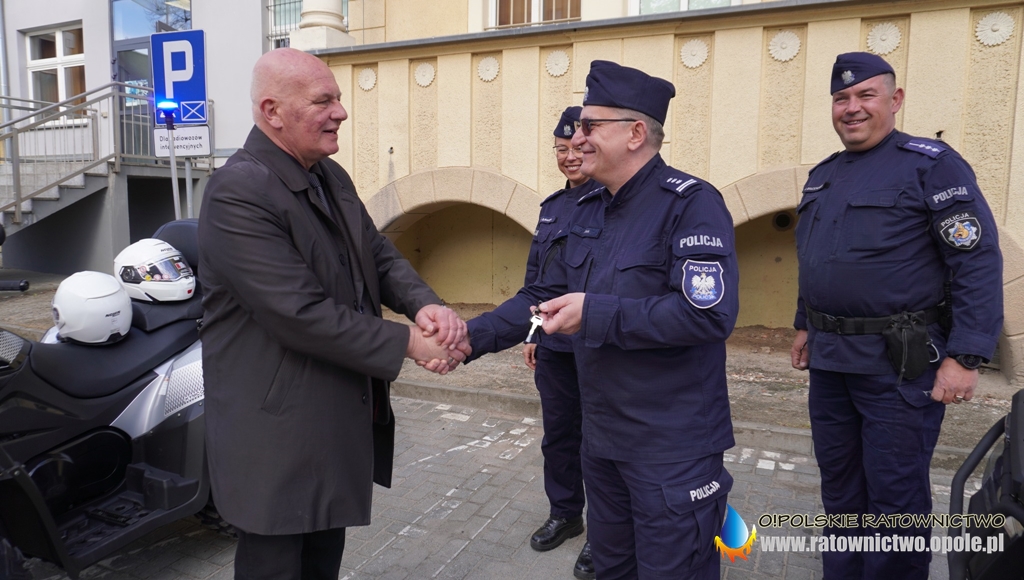 Andrzej Kruczkiewicz Starosta Nyski przekazał klucze do quadów na ręce insp. Krzysztofa Urbana Komendanta Powiatowego Policji w Nysie.