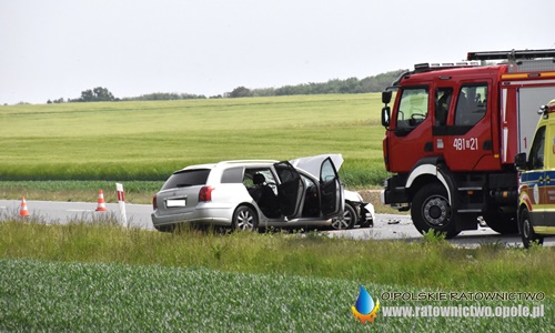 Na prostym odcinku drogi wojewódzkiej doszło do zderzenia dwóch samochodów osobowych – Volkswagena i Toyoty. Jeden z nich wylądował w rowie. W wyniku zdarzenia trzy osoby zostały poszkodowane.