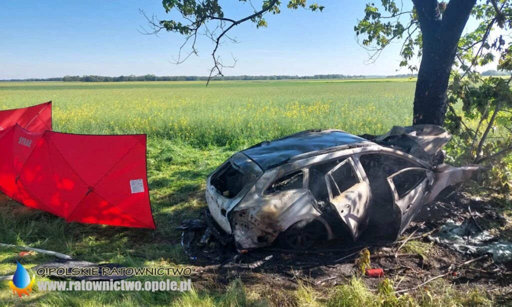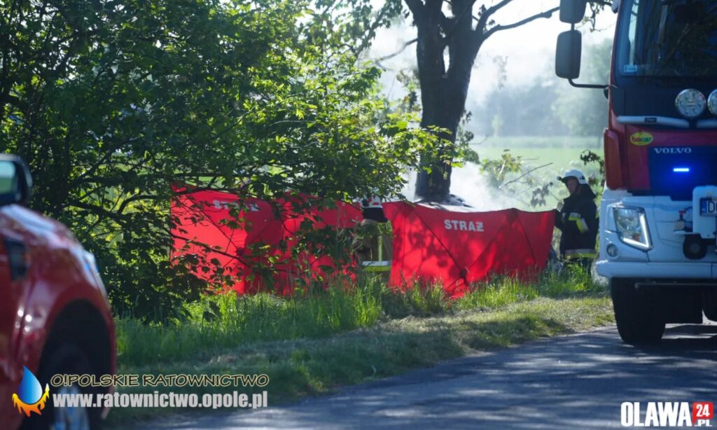 Tragiczny wypadek na trasie Oława – Łukowice Brzeskie. Kierowca spłonął wewnątrz samochodu
