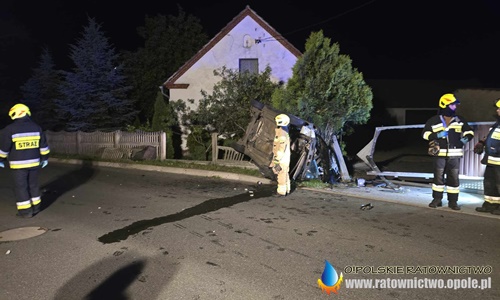 Doszło do zderzenia dwóch samochodów osobowych. W jego wyniku, jeden z pojazdów dachował, niszcząc tym smarnym przydrożną bramę i ogrodzenie jednej z posesji.
