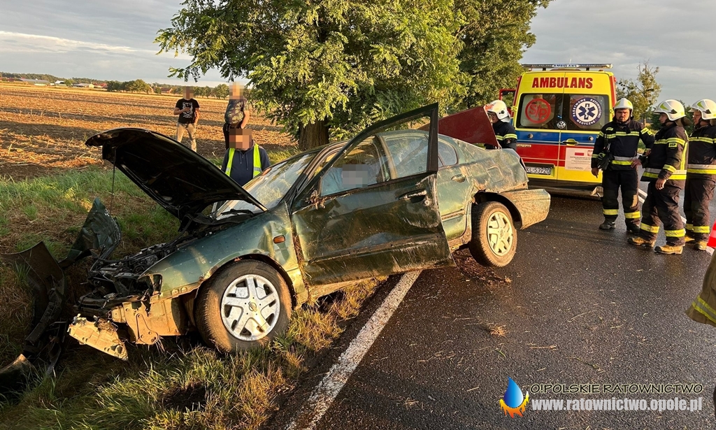 Obywatel Ukrainy kierujący samochodem osobowym marki Nissan, jadąc w kierunku Opola, na zakręcie stracił panowanie nad pojazdem, zjechał z drogi i uderzył w drzewo. Mężczyzna był trzeźwy.