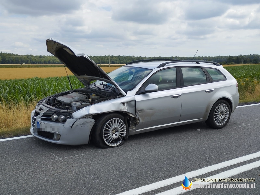 Na wysokości miejscowości Gierałcice Małe doszło do zderzenia samochodu osobowego marki Alfa Romeo i motocykla marki BMW.
