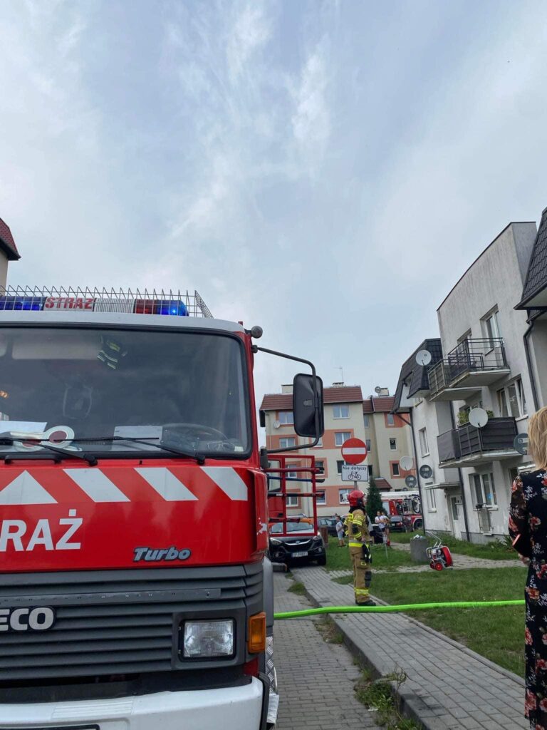 Po dojeździe na miejsce potwierdzono pożar w części jednego z mieszkań. Do budynku weszła rota wyposażona w aparaty ochrony układu oddechowego. Drzwi do mieszkania były zamknięte.
