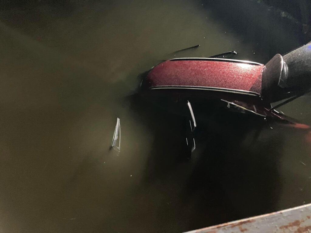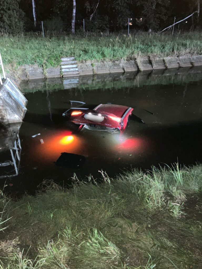 Po dojeździe na miejsce zastano samochód osobowy marki Lexus znajdujący się w wodzie – przydrożnym zbiorniku retencyjnym.
