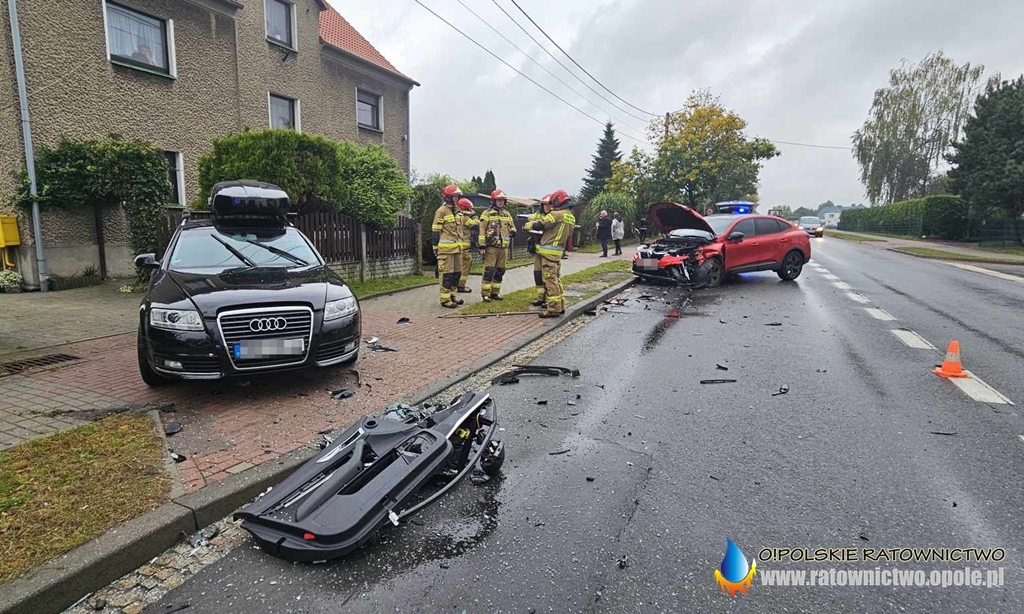 Ze wstępnych ustaleń pracujących na miejscu policjantów wynika, że kierujący samochodem osobowym marki Renault Arkana jadąc w kierunku Kluczborka, zjechał na lewy pas, gdzie zderzył się z prawidłowo jadącym Audi.