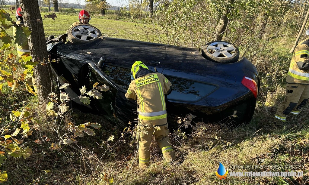 Po przybyciu służb na miejsce potwierdzono dachowanie samochodu osobowego marki Audi.