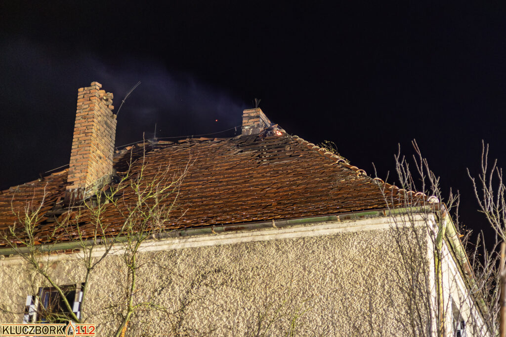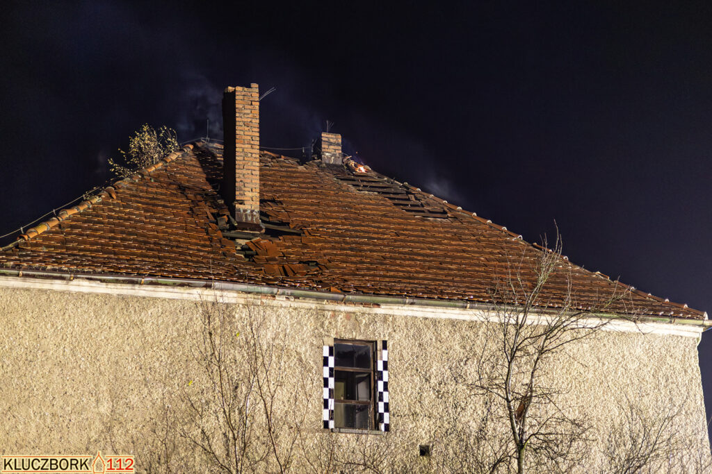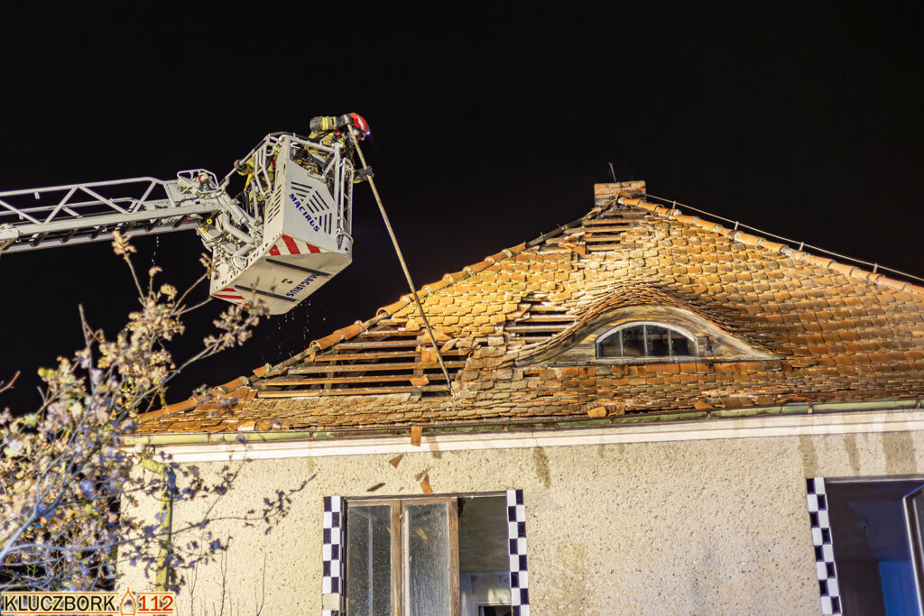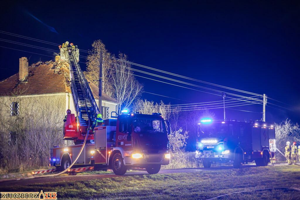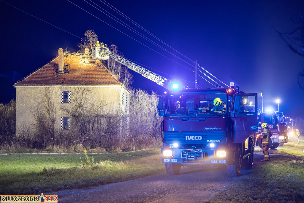Po przybyciu na miejsce pierwszego zastępu potwierdzono pożar poddasza opuszczonego domu jednorodzinnego.