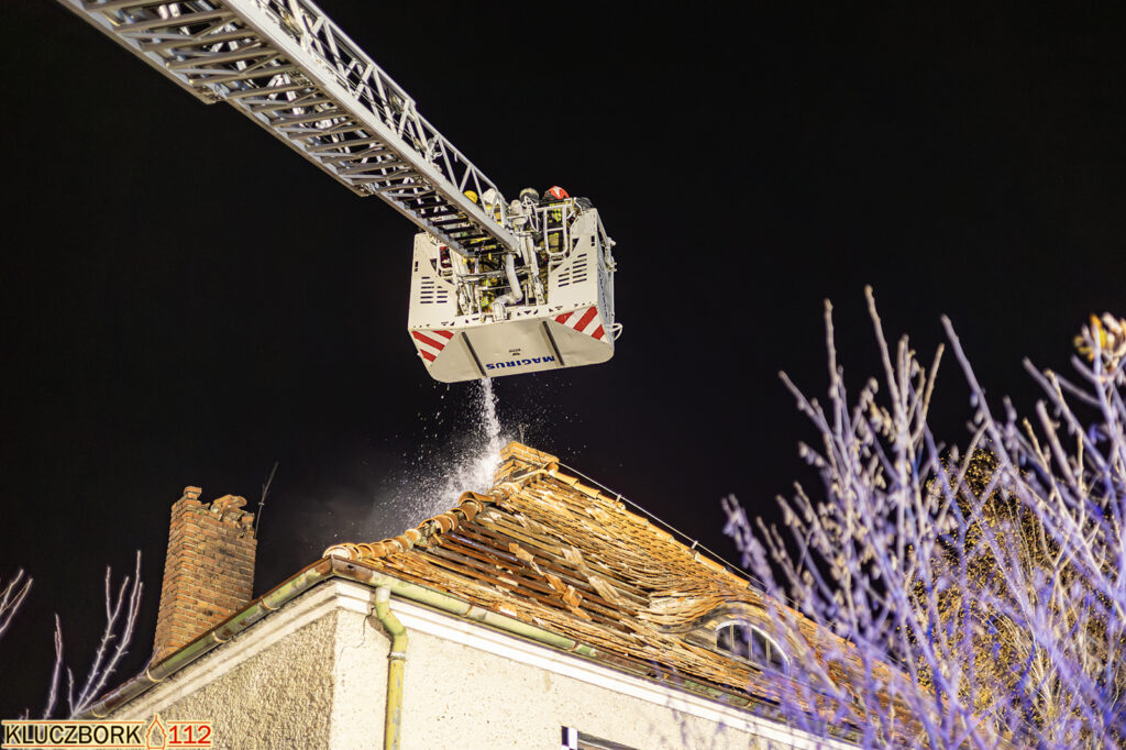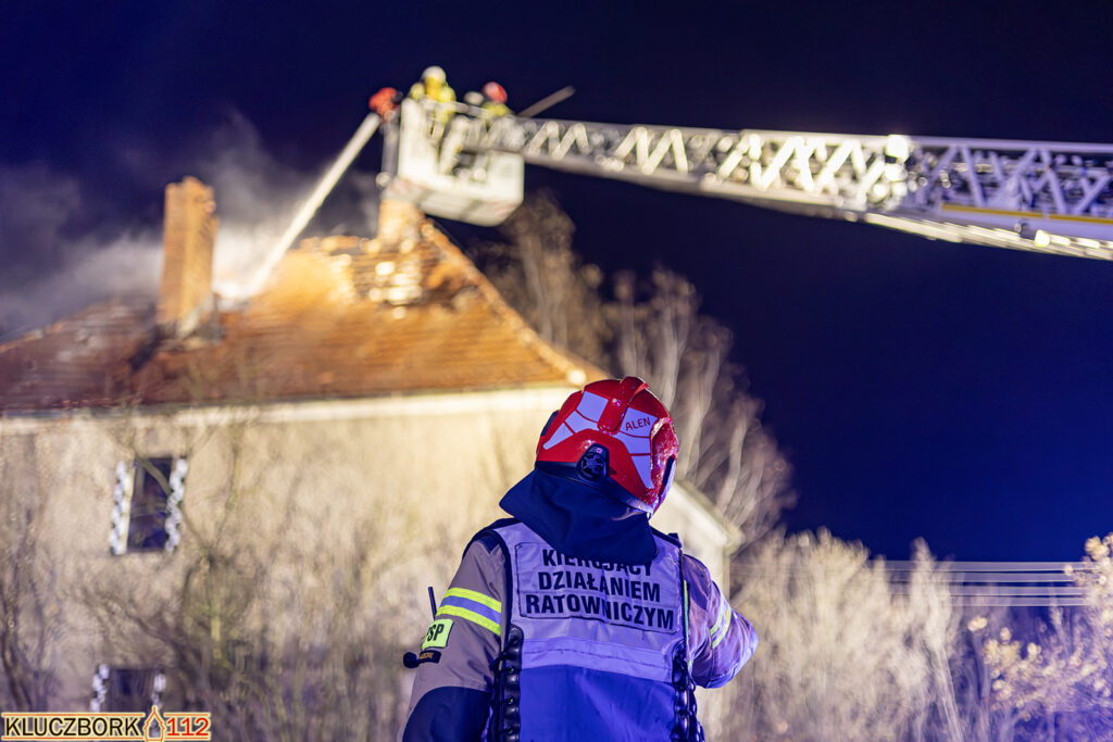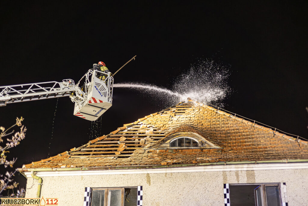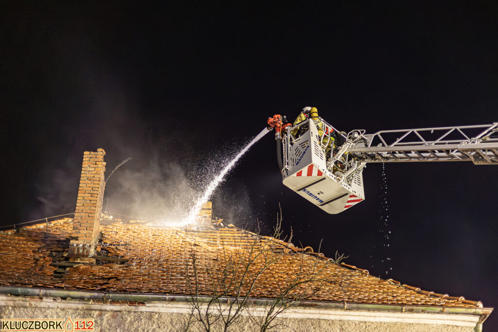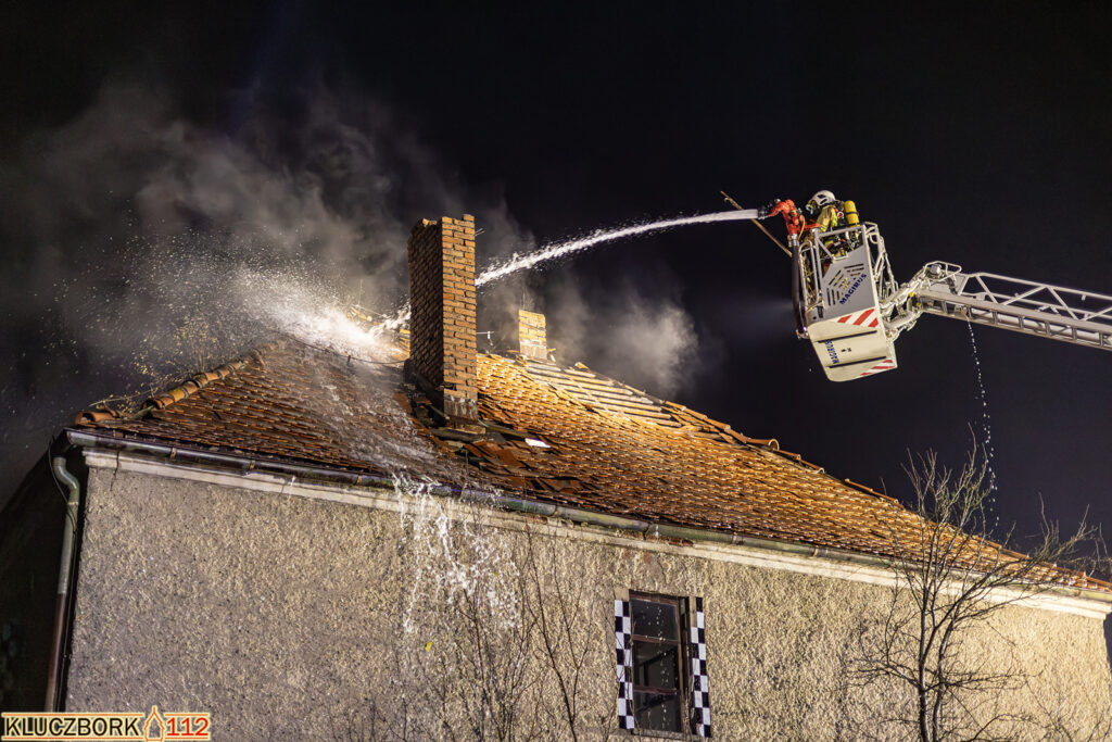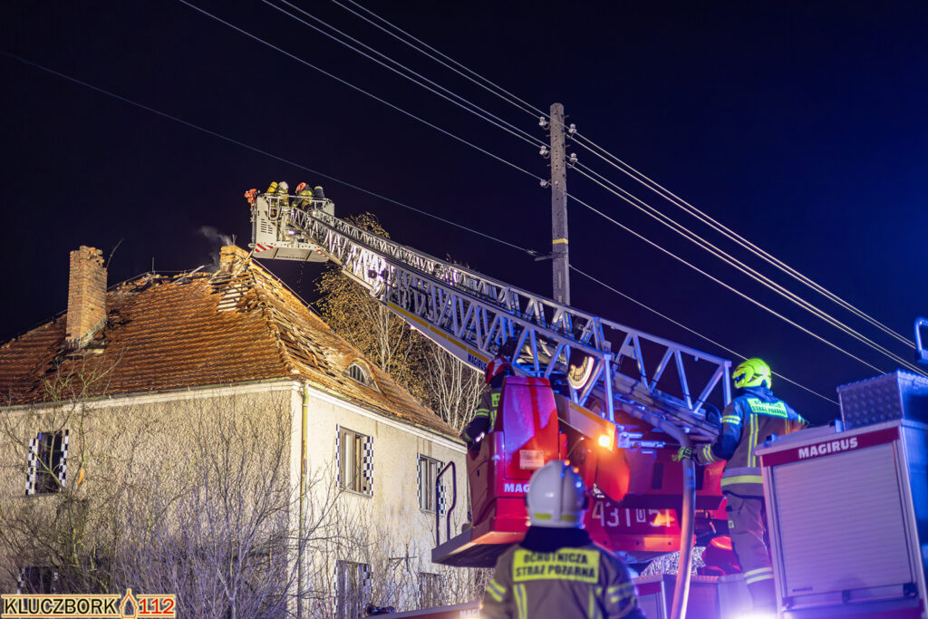 Po przybyciu na miejsce pierwszego zastępu potwierdzono pożar poddasza opuszczonego domu jednorodzinnego.