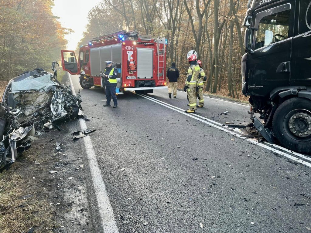 - Ze wstępnych ustaleń pracujących na miejscu policjantów wynika, że kierujący samochodem osobowym marki Peugeot zjechał na przeciwległy pas ruchu i zderzył się czołowo z samochodem ciężarowym marki Scania. W wyniku zdarzenia dwaj mężczyźni w wieku 28 i 32 lat podróżujący osobówką zginęli na miejscu – informuje asp. szt. Dawid Gierczyk oficer prasowy Komendy Powiatowej Policji w Kluczborku.