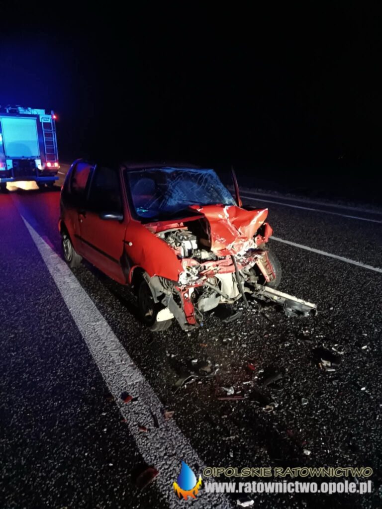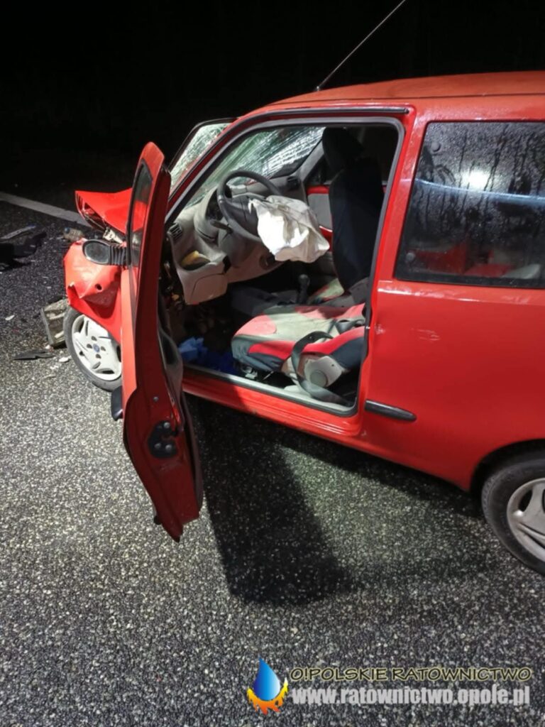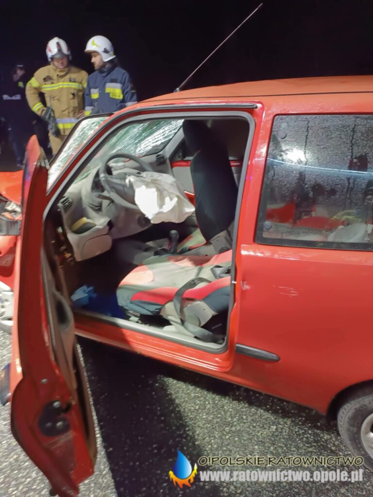Kierująca osobowym fiatem z poważnymi obrażeniami ciała została przetransportowana przez Zespół Ratownictwa Medycznego do szpitala w Opolu.