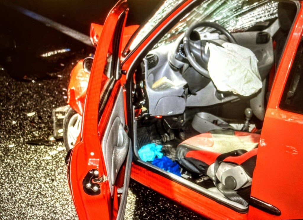Kierująca osobowym fiatem secento, która jechała za ciążowym mercedesem nie zachowując bezpiecznej odległości od pojazdu poprzedzającego wjechała w jego tył.