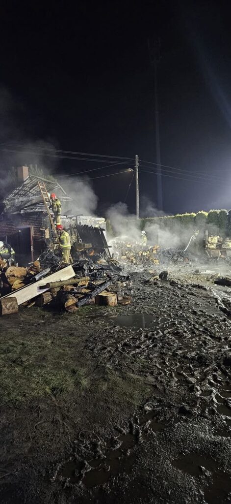 Po przyjeździe na miejsce potwierdzono mocno rozwinięty pożar drewnianego budynku.