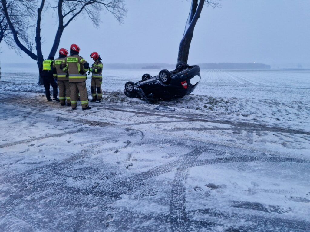Po przybyciu na miejsce zastano samochód osobowy po dachowaniu w przydrożnym rowie. W wyniku zdarzenia nikomu nic się nie stało.