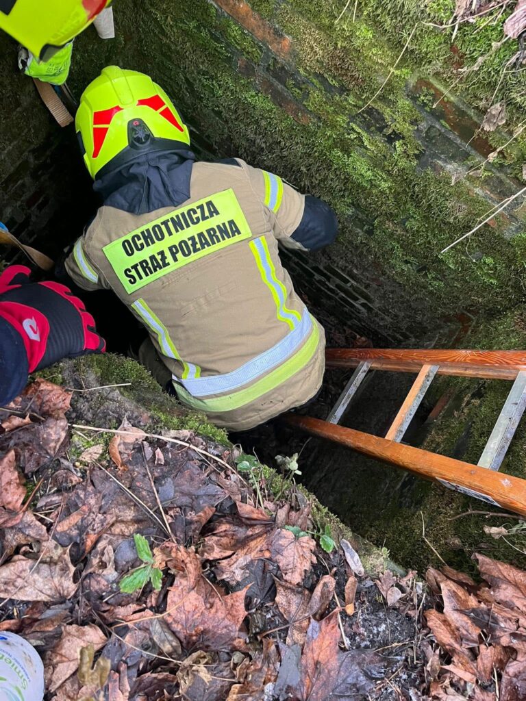 Po dojeździe na miejsce potwierdzono treść zgłoszenia. Strażacy bezpiecznie ewakuowali psa na powierzchnię.