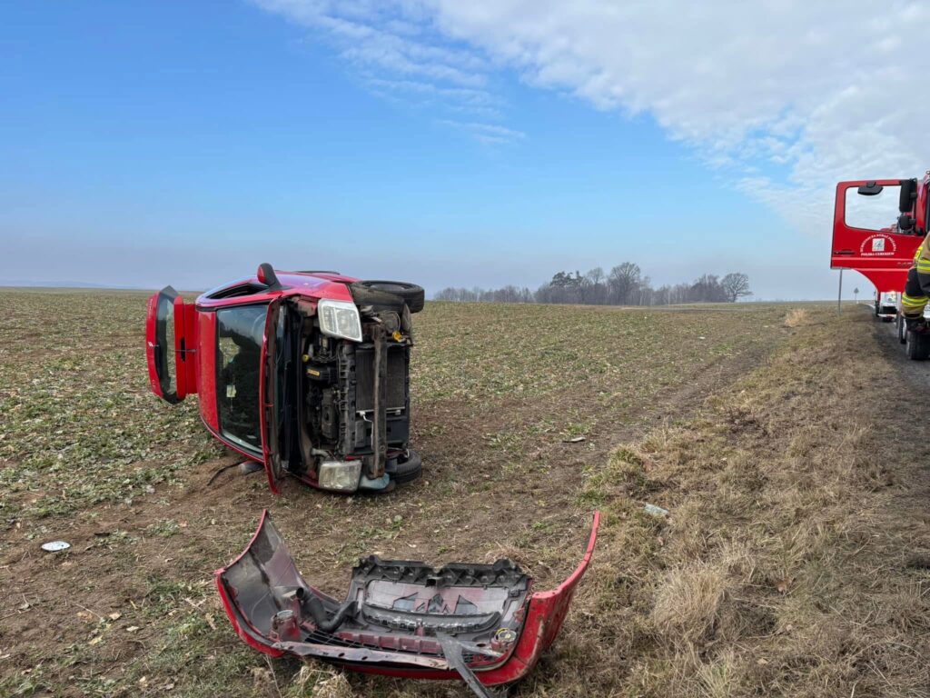 Kierująca samochodem osobowym straciła panowanie nad pojazdem, wypadła z drogi i dachowała.