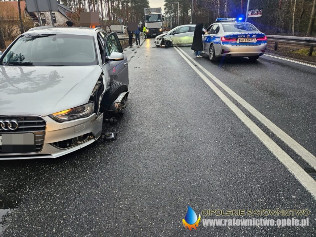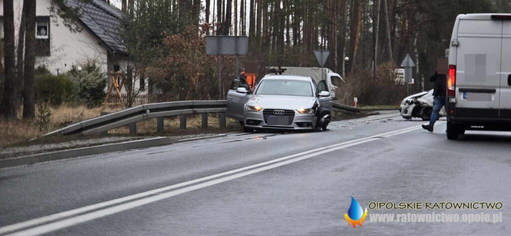 Doszło tam do zderzenia dwóch samochodów osobowych – Audi i Opla. Pojazdami łącznie podróżowały trzy osoby. Nikomu nic się nie stało.