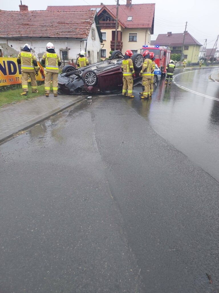 Kierująca samochodem osobowym marki Opel straciła panowanie nad pojazdem, uderzyła w ogrodzenie posesji i dachowała. Kobieta podróżowała wraz z 13-letnią córką. Obie poszkodowane zdołały opuścić samochód o własnych siłach przed przyjazdem służb. Jedna osoba trafiła pod opiekę ZRM.