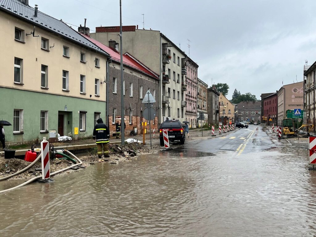 Większość zdarzeń dotyczy zalanych ulic, posesji oraz piwnic. Działania prowadzone są zarówno przez strażaków Państwowej Straży Pożarnej jak również Ochotniczej Straży Pożarnej.