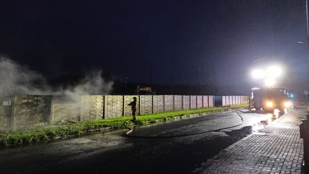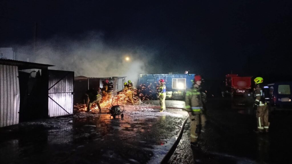 Po dojeździe pierwszych sił stwierdzono rozwinięty pożar trzech blaszanych garaży znajdujących się na terenie zakładu. Występowało silne zadymienie oraz widoczne płomienie. Strażacy przystąpili do gaszenia ognia oraz zabezpieczenia terenu.
