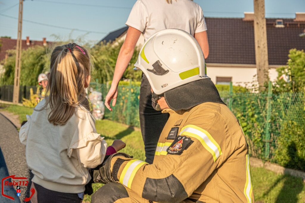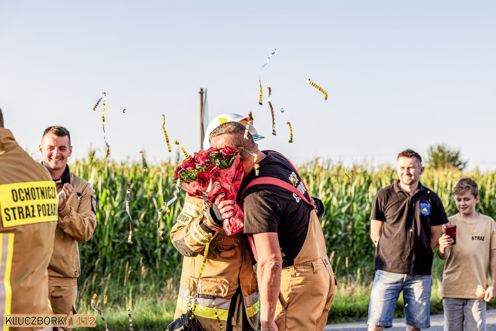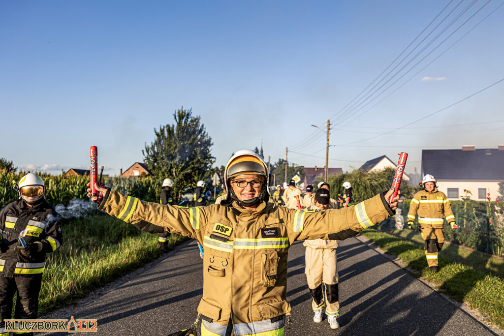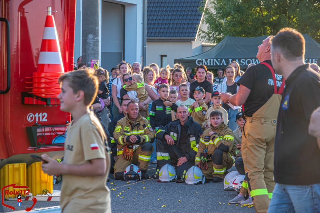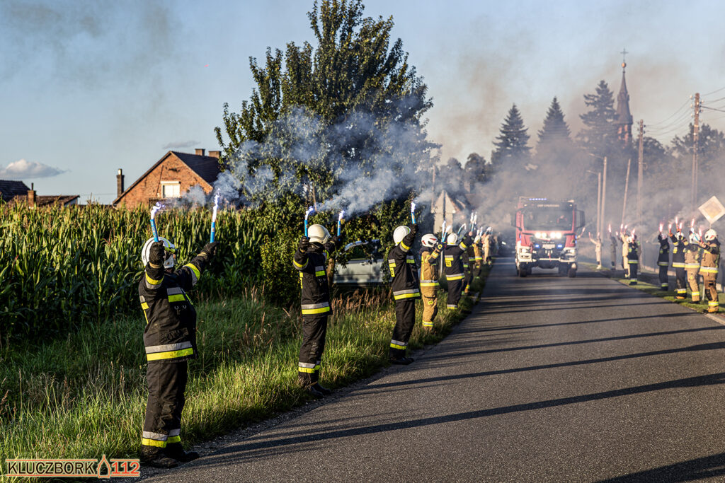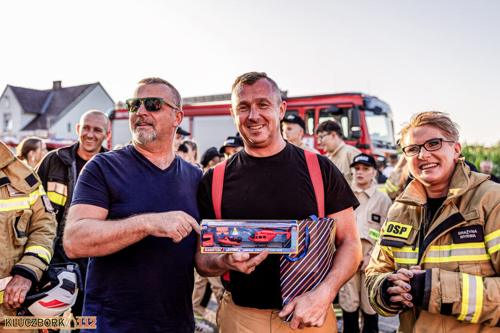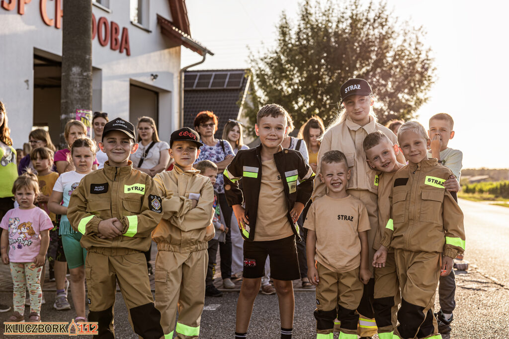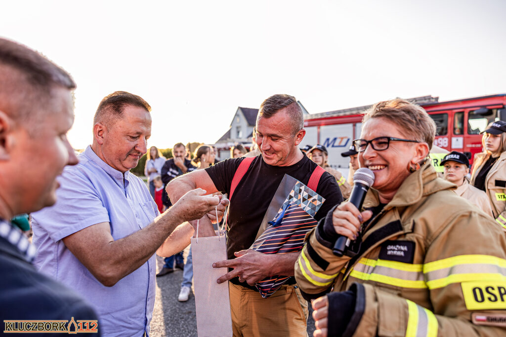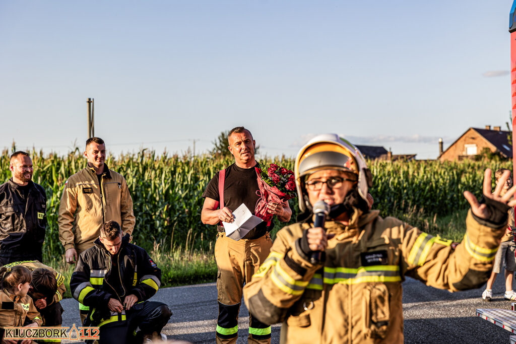 Podczas uroczystości druhowie ustawili się w szpaler, a w momencie wjazdu pojazdu na plac jednostki odpalili race, tworząc efektowne i symboliczne powitanie nowego wozu.