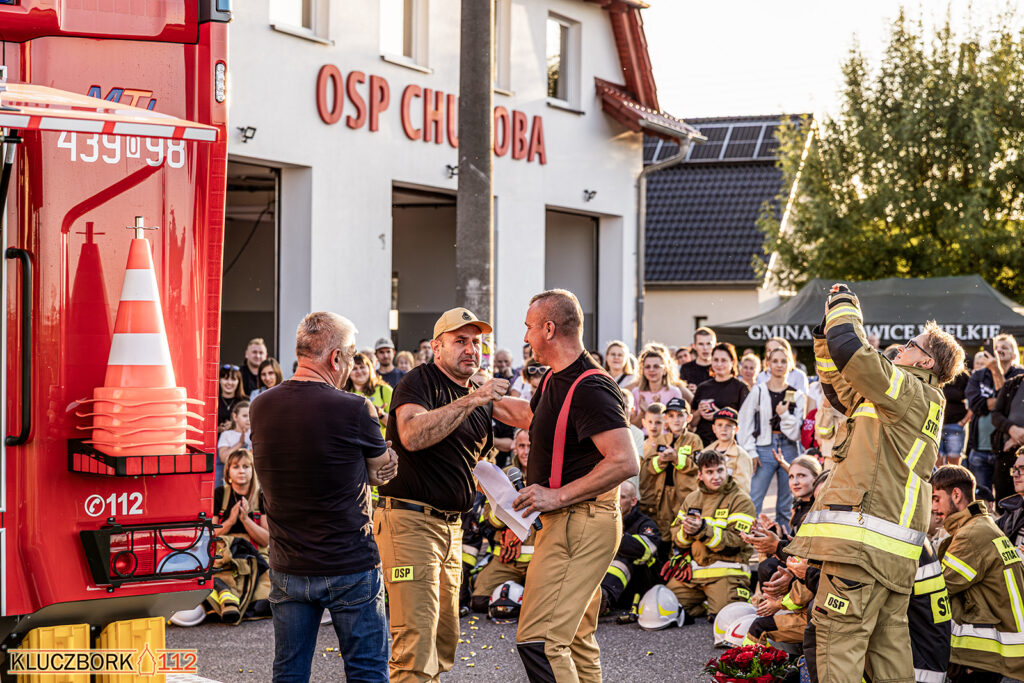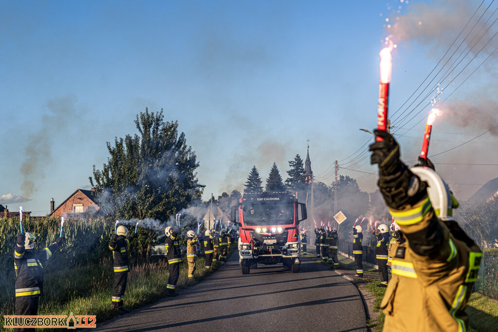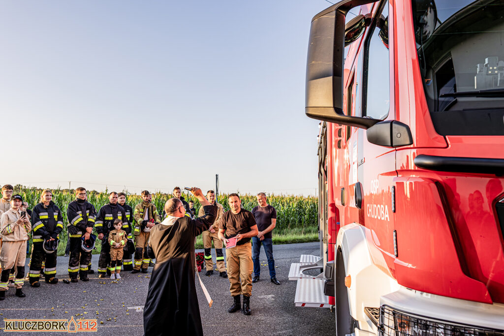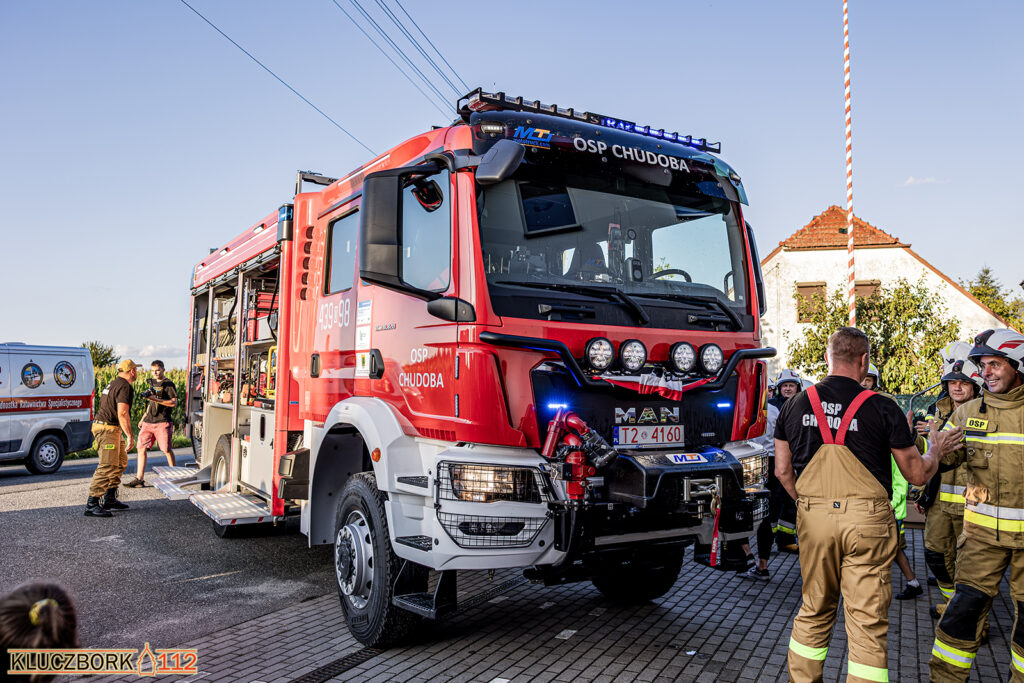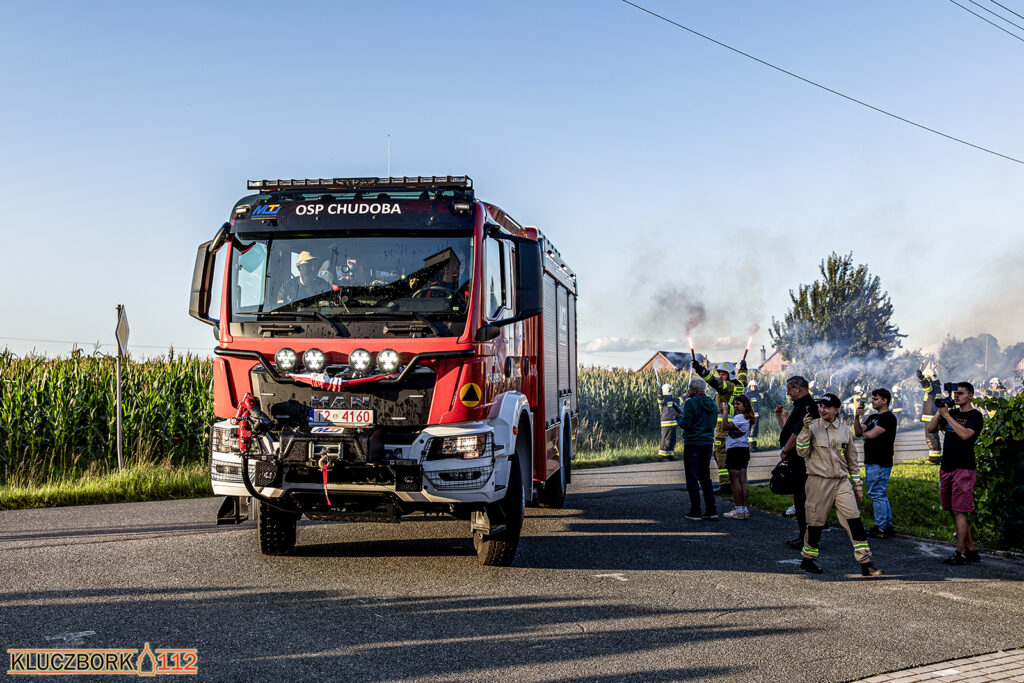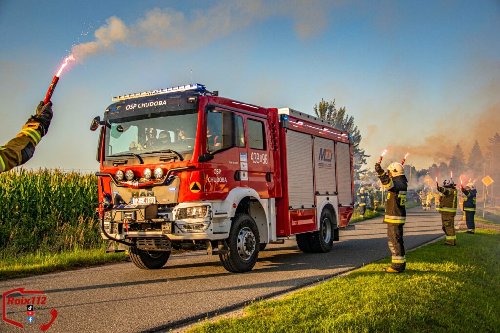 W środę, 6 sierpnia po godzinie 19:00, strażacy z OSP Chudoba uroczyście powitali w swojej jednostce fabrycznie nowy, średni samochód ratowniczo-gaśniczy na podwoziu MAN.