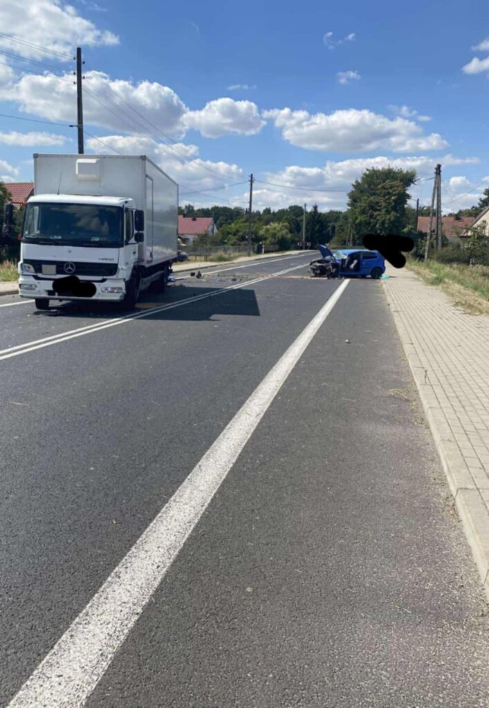Doszło tam do zderzenia samochodu osobowego z samochodem ciężarowym.