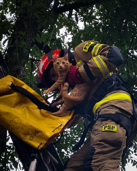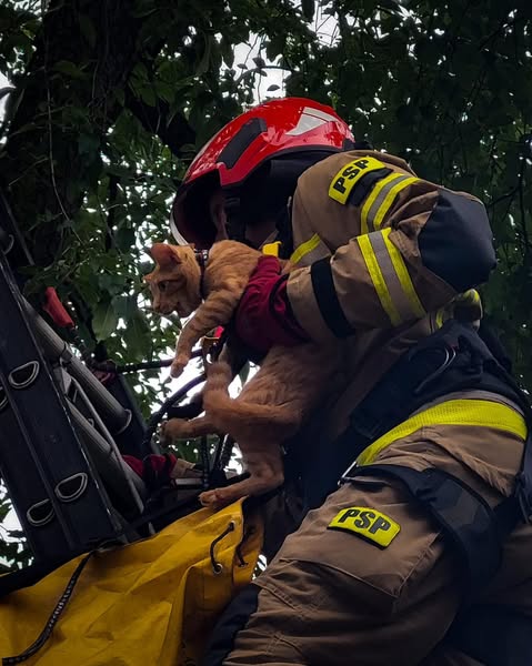 Jak się okazało na jednym z drzew przy ulicy Gagarina utknął przestraszony kotek, który nie był w stanie samodzielnie zejść. Dzięki wzorowej i profesjonalnej postawię strażaków kot został bezpiecznie sprowadzony na ziemię.