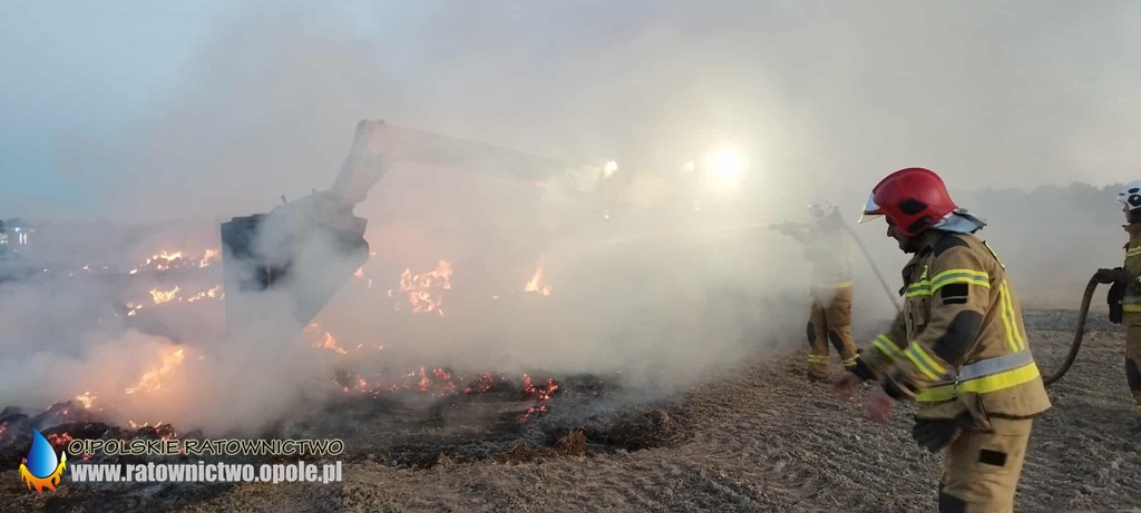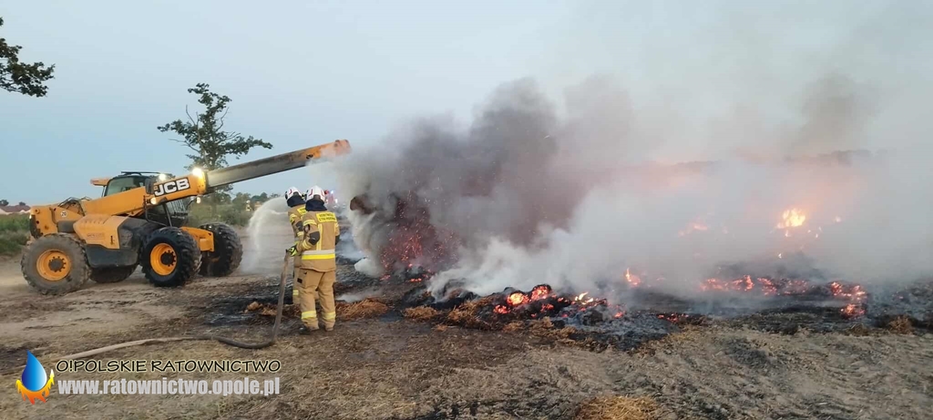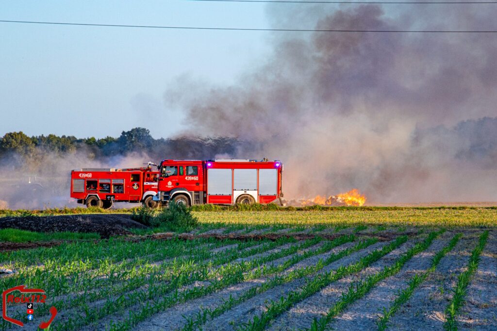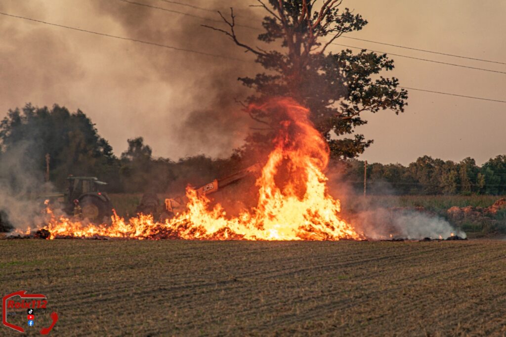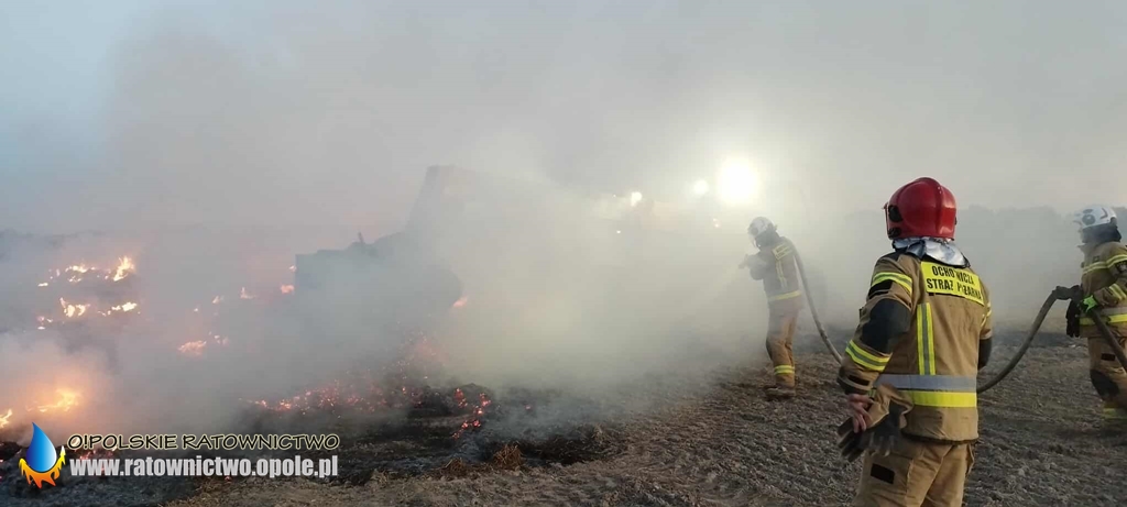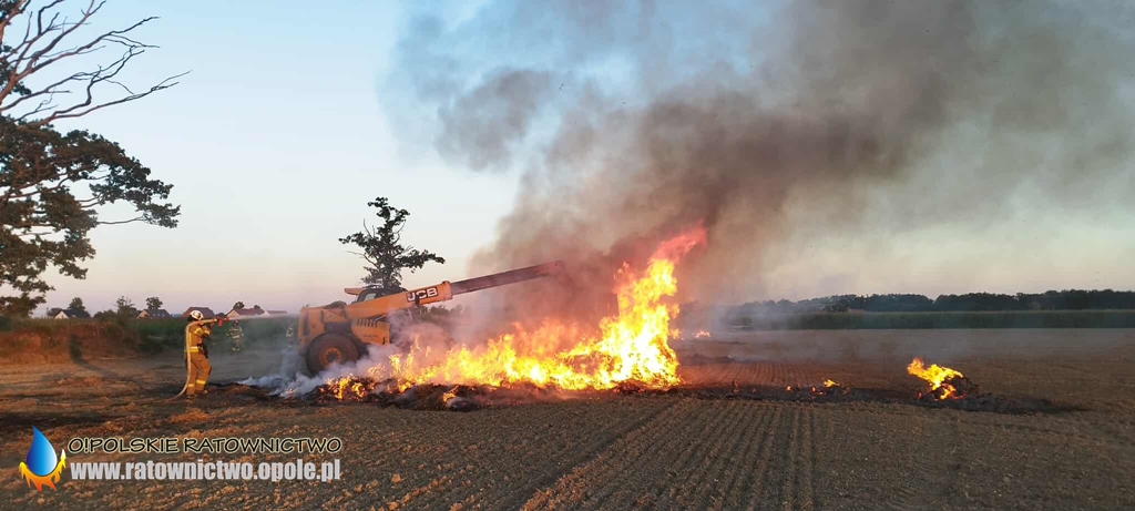 Ten sam sprzęt został później wykorzystany podczas działań gaśniczych – ładowarka teleskopowa rozgarniała płonącą słomę, co znacząco ułatwiło strażakom skuteczne dogaszanie ogniska pożaru.