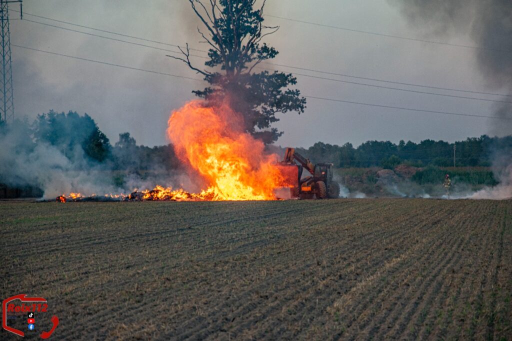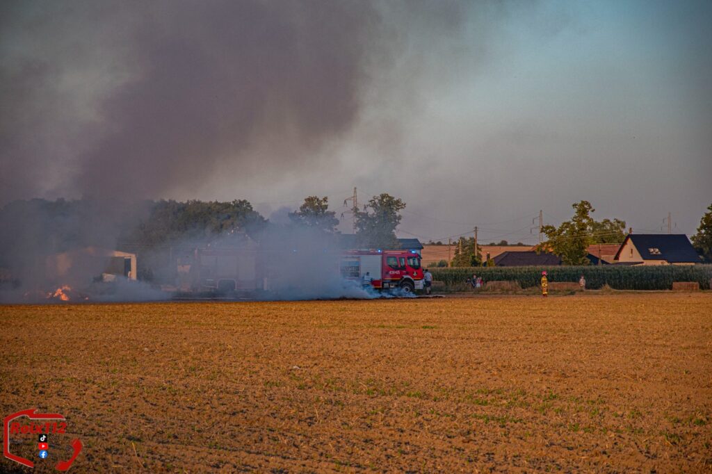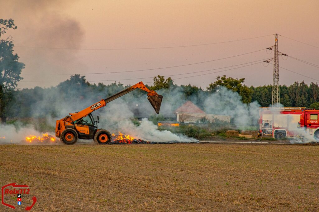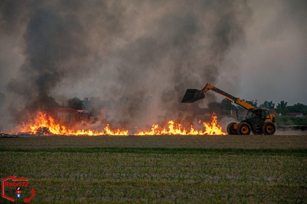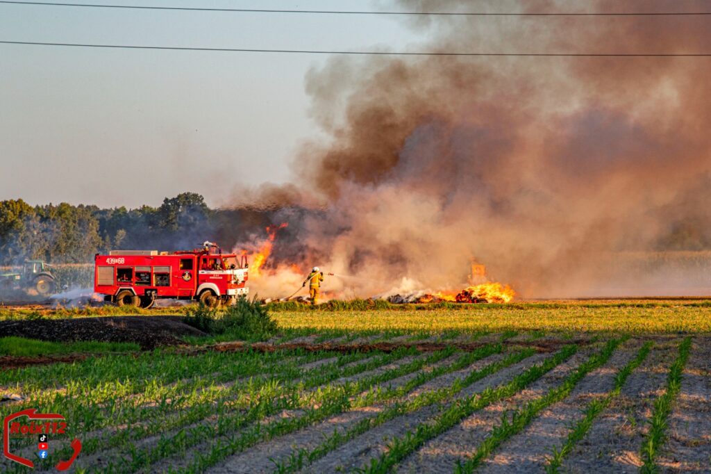 Ten sam sprzęt został później wykorzystany podczas działań gaśniczych – ładowarka teleskopowa rozgarniała płonącą słomę, co znacząco ułatwiło strażakom skuteczne dogaszanie ogniska pożaru.