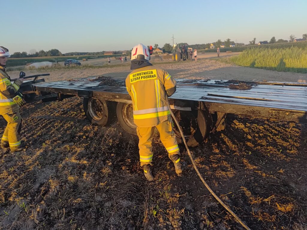 W wyniku zdarzenia nadpaleniu uległy przyczepy, w tym instalacja elektryczna, opony, podłoga oraz nieznacznie ciągnik.