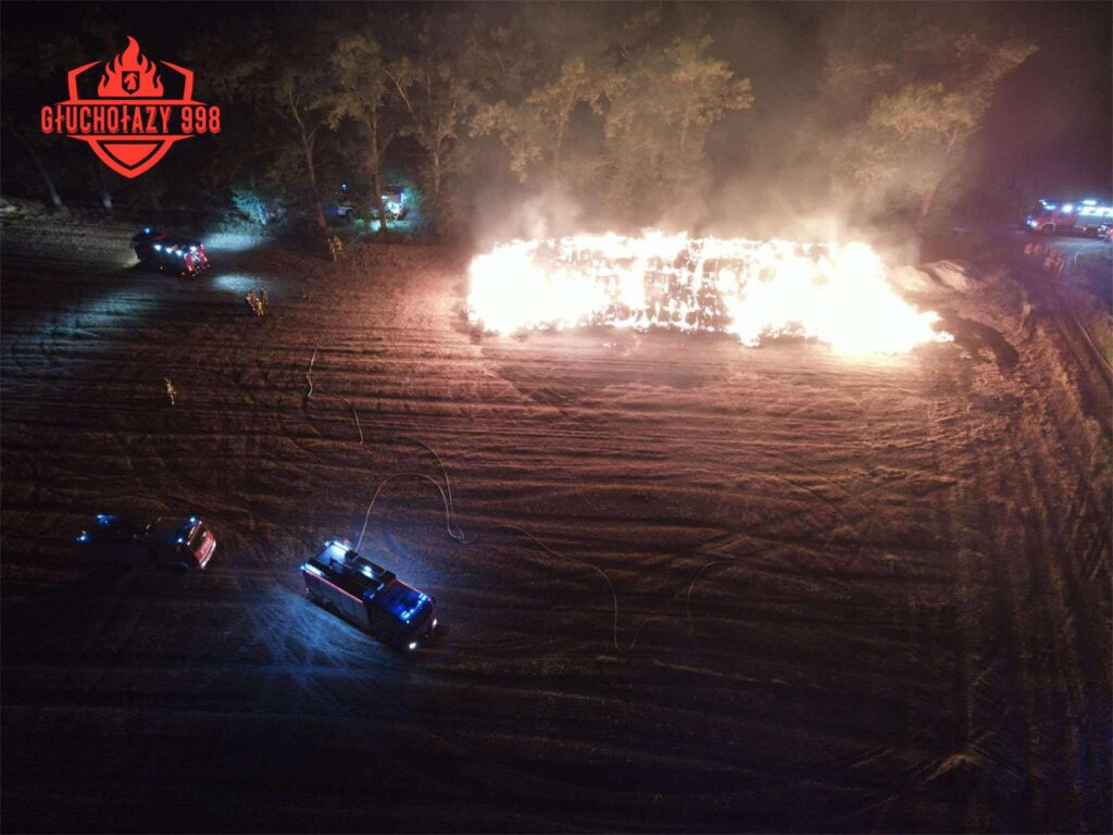 Po przybyciu pierwszych jednostek potwierdzono pożar słomy składowanej na polu. Strażacy prowadzili działania gaśnicze i zabezpieczające, które trwały do godzin porannych.