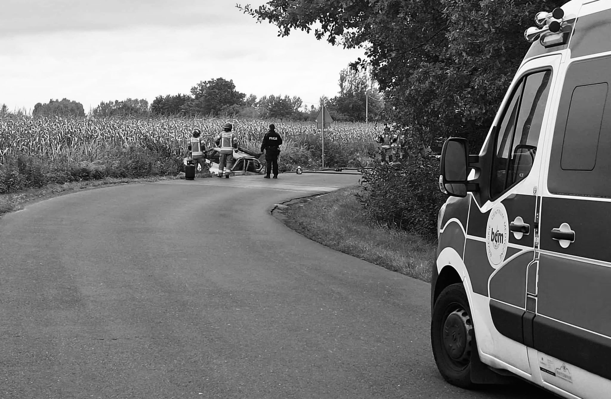 Po dojeździe służb na miejsce samochód był całkowicie objęty ogniem. Pomimo podjętej akcji ratunkowej, życia mężczyzny nie udało się uratować.