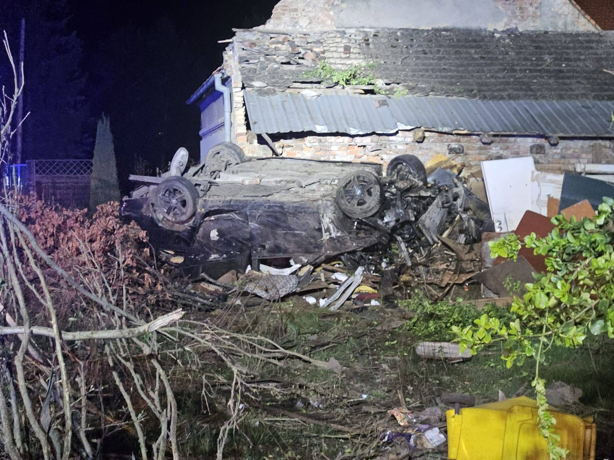 19-letni kierujący samochodem osobowym marki BMW, nie dostosowując prędkości do warunków panujących na drodze, stracił panowanie nad pojazdem, dachował i uderzył w budynek.