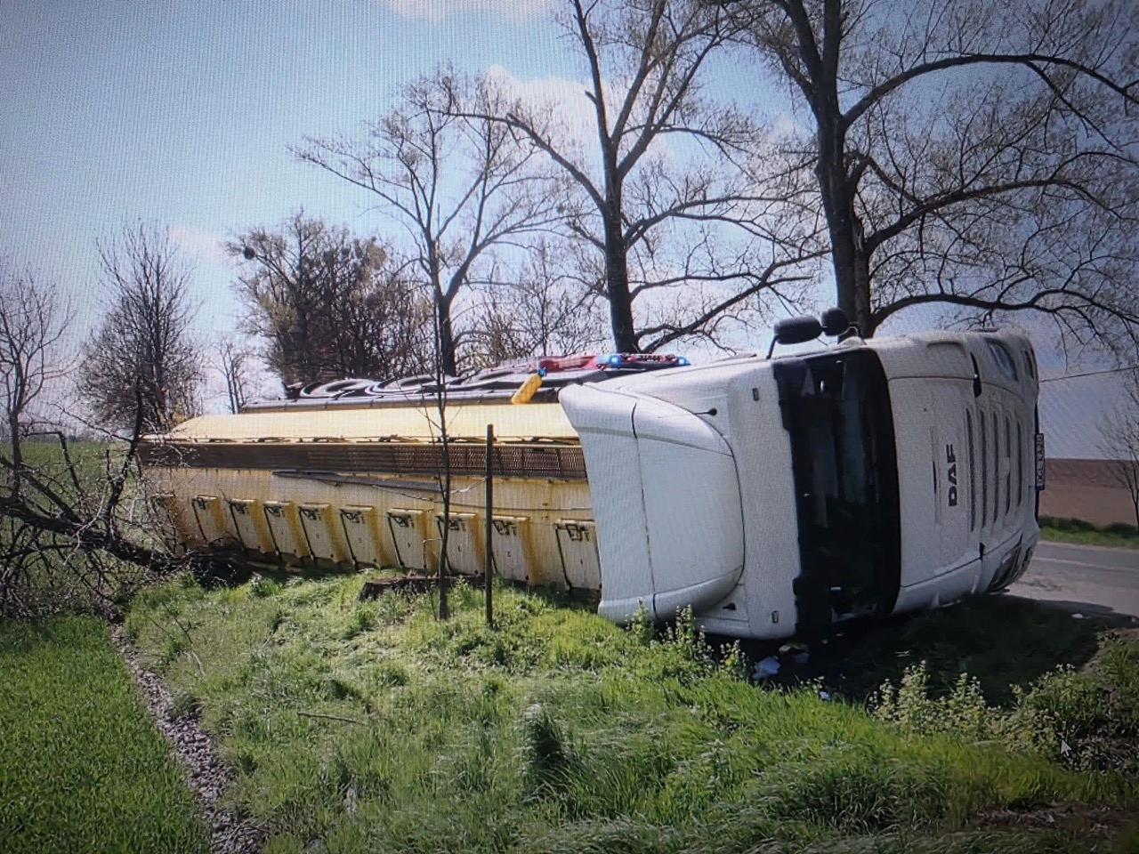 W efekcie stracił panowanie nad pojazdem, co doprowadziło do wywrócenia się zestawu na prawy bok.